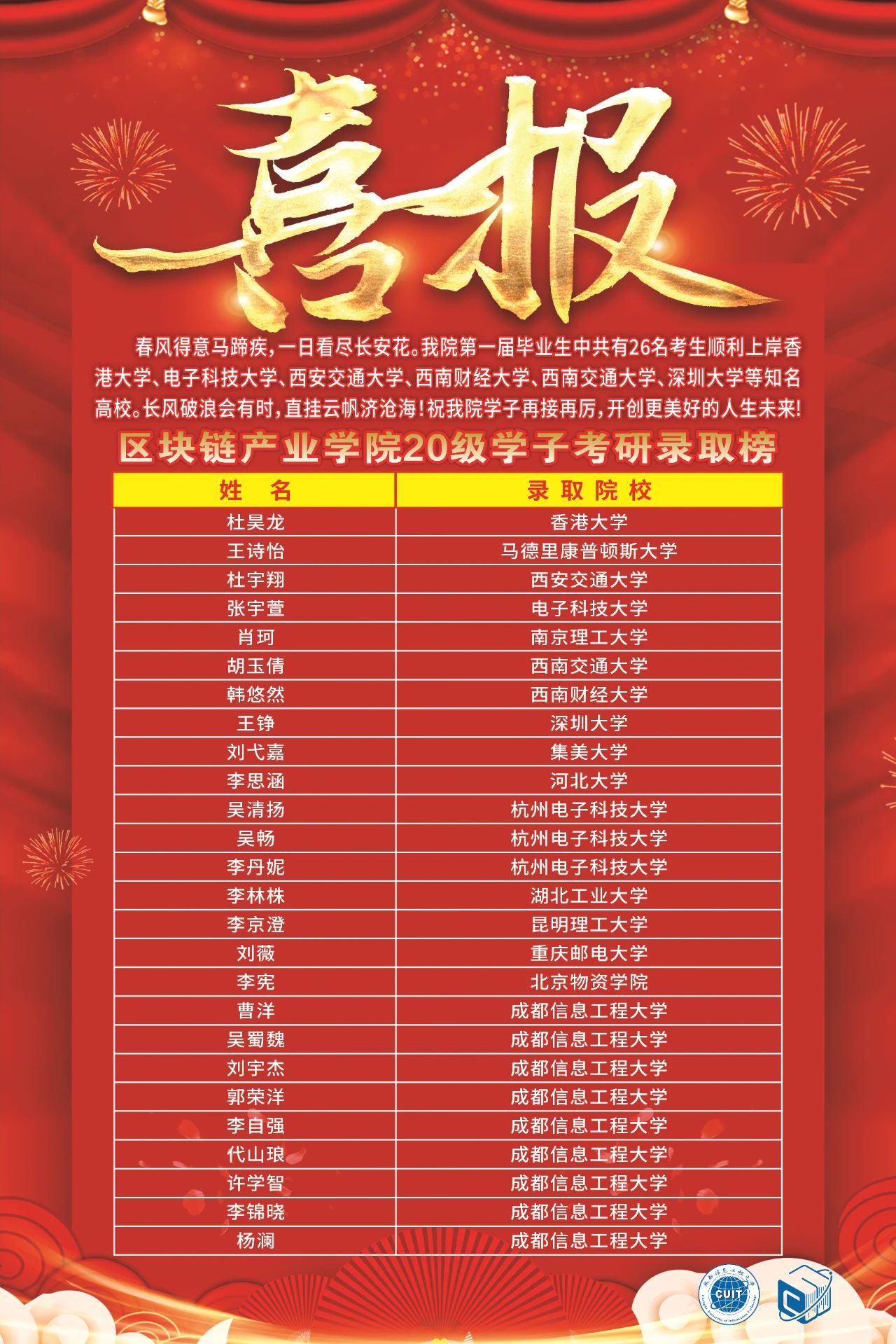 不负“研”心 终成“硕”果 | 区块链产业学院学子考研录取喜报
