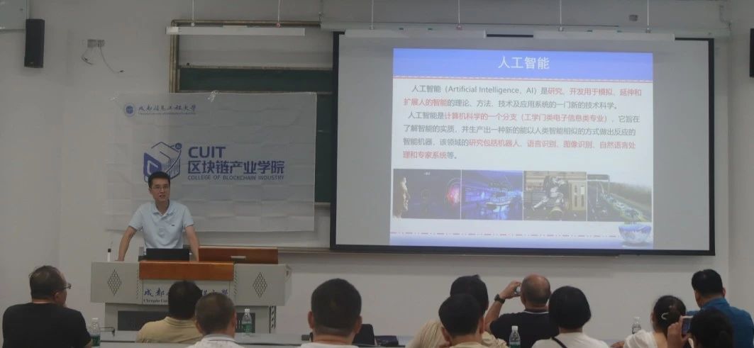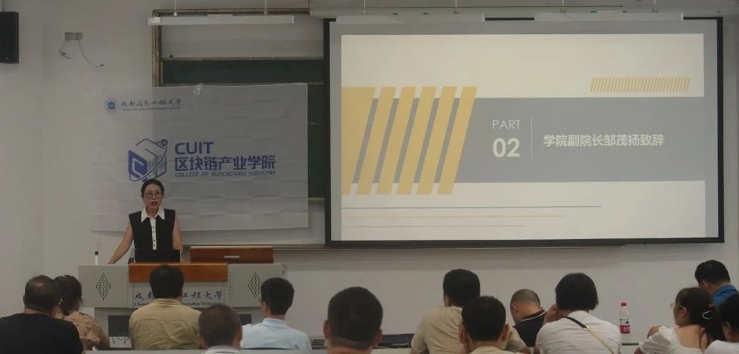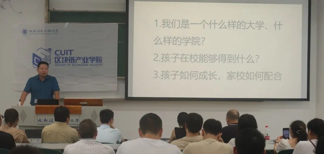 学院区块链工程专业系主任汪凌锋向新生家长们详细介绍了区块链工程专业的设立背景和前景,强调其在信息技术领域的创新应用,并以实例阐述了区块链技术在金融、供应链管理、智能合约等领域的广泛应用。