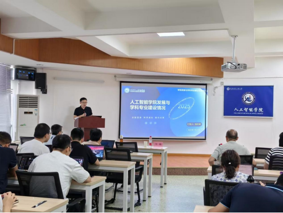 7 月 10 日,人工智能学院在学院多功能厅召开了学院发展及学科专业建设研讨会。学校党委常委、副校长吴锡,人工智能学院院长张仕斌、党委书记林细俤等学院领导及全体教职工参加了研讨会。