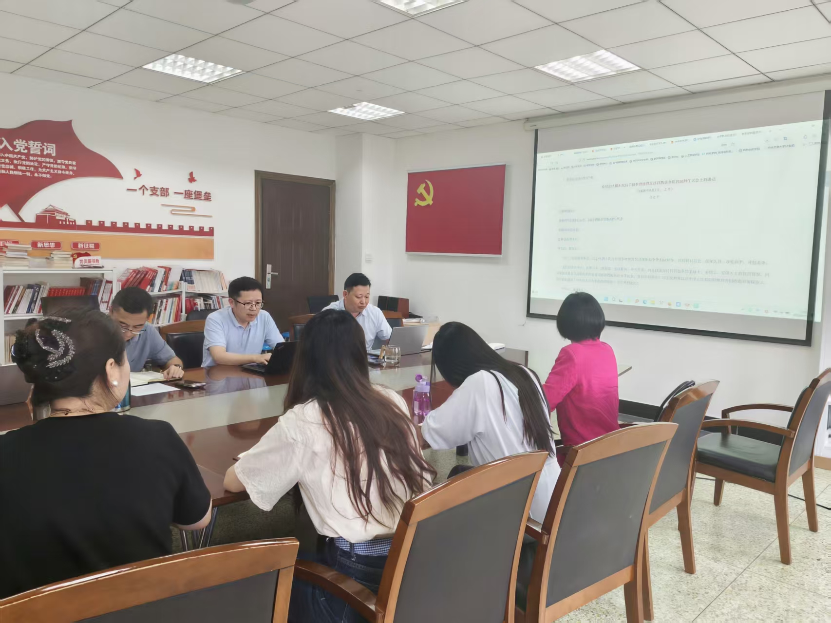 9月18日上午,人工智能学院在信息楼四楼三会议室组织召开本学期第一次党委理论学习中心组(扩大)学习会暨党支部书记例会。学院党委委员、各党支部书记参加会议,学院党委书记林细俤主持会议并领学。