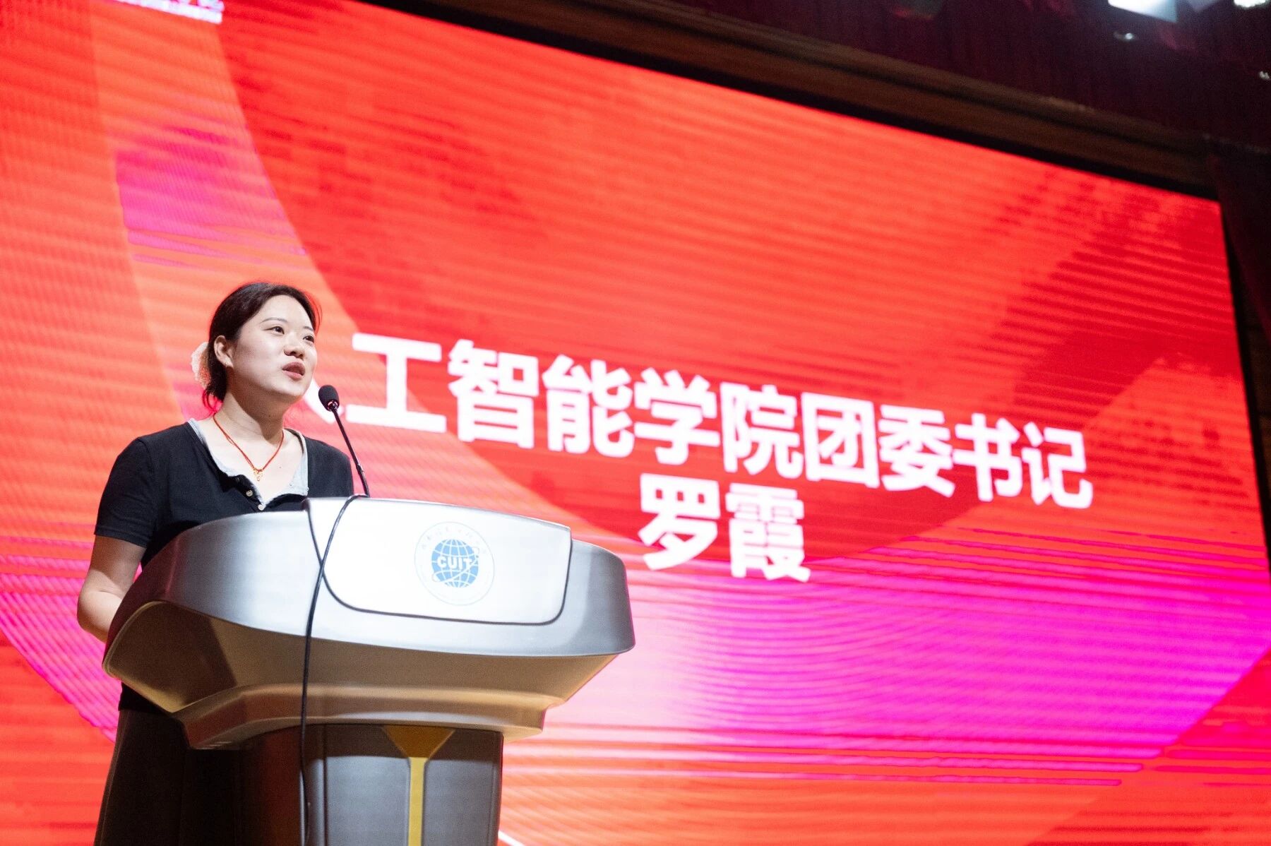 为助力 2025 级新生快速融入校园生活,搭建成长锻炼的优质平台,9 月 12日晚,人工智能学院在成信礼堂,隆重举办团委学生会联合招新宣讲会。学院团委组织部、宣传部、青发部,学生会办公室、活动部,生活权益部,青年志愿者协会(青志协)及心链心工作室齐聚一堂,向新生们展现部门特色与风采,学院团委书记罗霞老师出席活动并发表讲话。