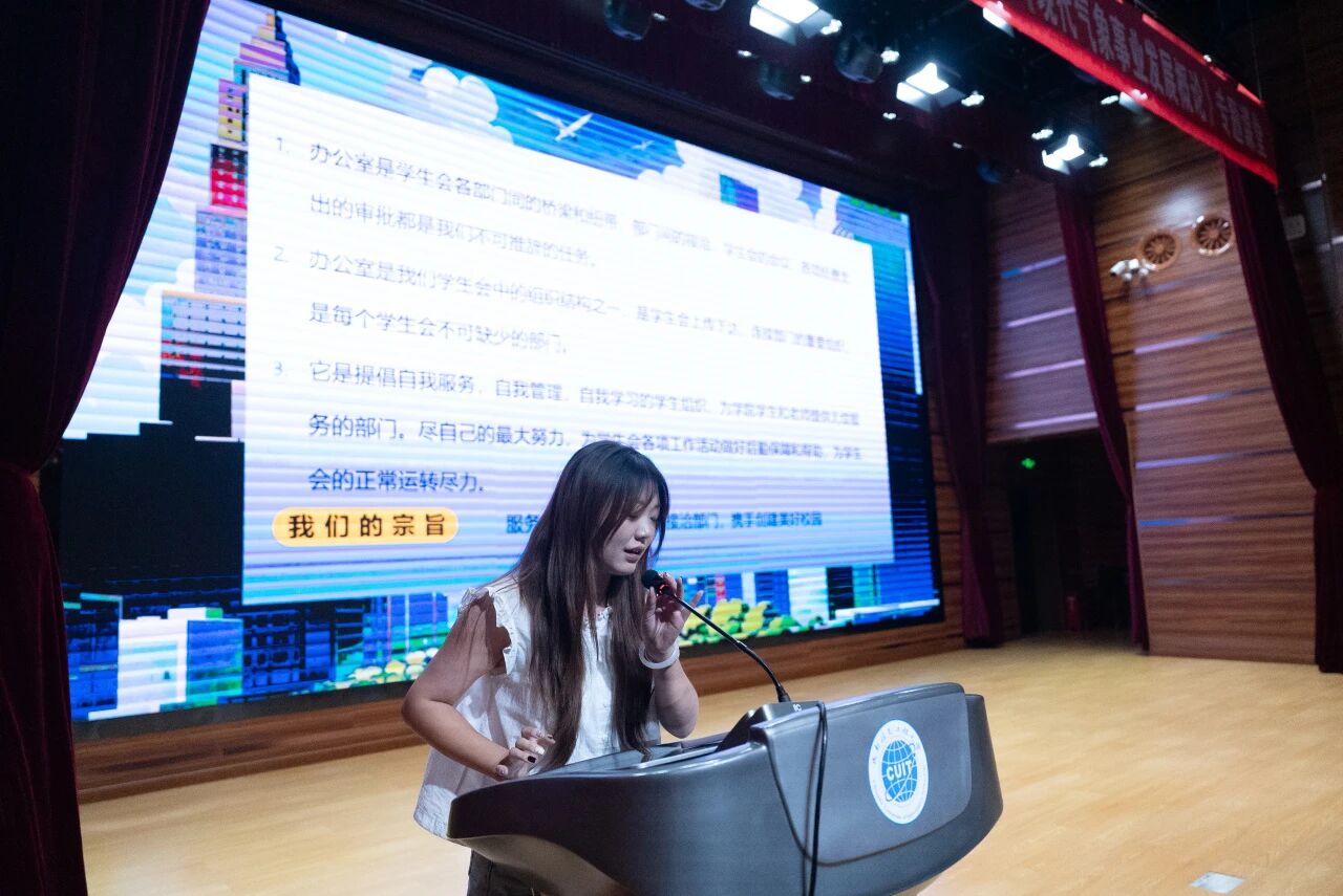 随后,团委副书记曾妙欣、学生会主席武硕涵、青志协会长杨明清 依次上台致辞,从不同维度为新生解读学生组织的价值与意义。他们结合自身在学生工作中的经历,分享了如何在部门协作中平衡个人发展与集体目标,鼓励新生在加入部门后,敢于提出新想法、尝试新方式,针对新生可能面临的时间管理难题,分享了制定计划、高效执行的实用方法。三位主席团成员的致辞既有经验分享,又有贴心建议,引发了新生们的强烈共鸣。