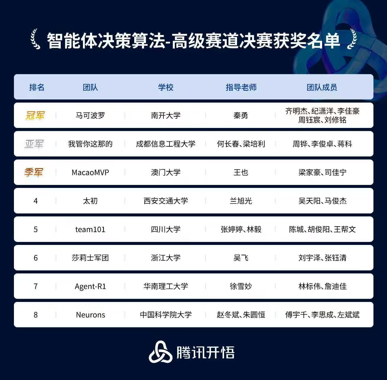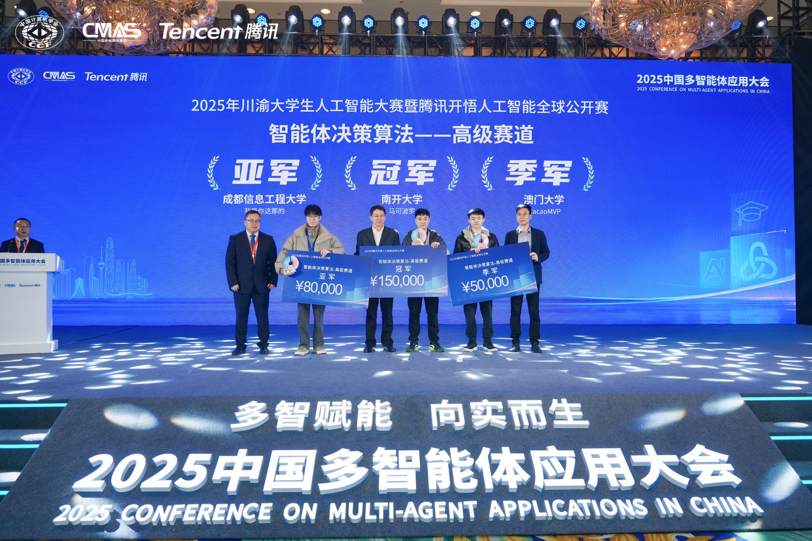 近日,由四川省教育厅、四川省科学技术厅、重庆市教育委员会、重庆市科学技术局联合主办的“2025 年川渝大学生人工智能大赛暨腾讯开悟人工智能全球公开赛” 成功落下帷幕。大赛聚焦“智能决策”典型的“人工智能+”应用场景,依托腾讯自主研发的多智能体强化学习研究开放平台,旨在培养具备创新精神与工程实践能力的新一代人工智能青年人才,吸引了包括上海交通大学、西安交通大学、电子科技大学、澳门大学等500多所知名高校,近万名硕博生和本科生参与。