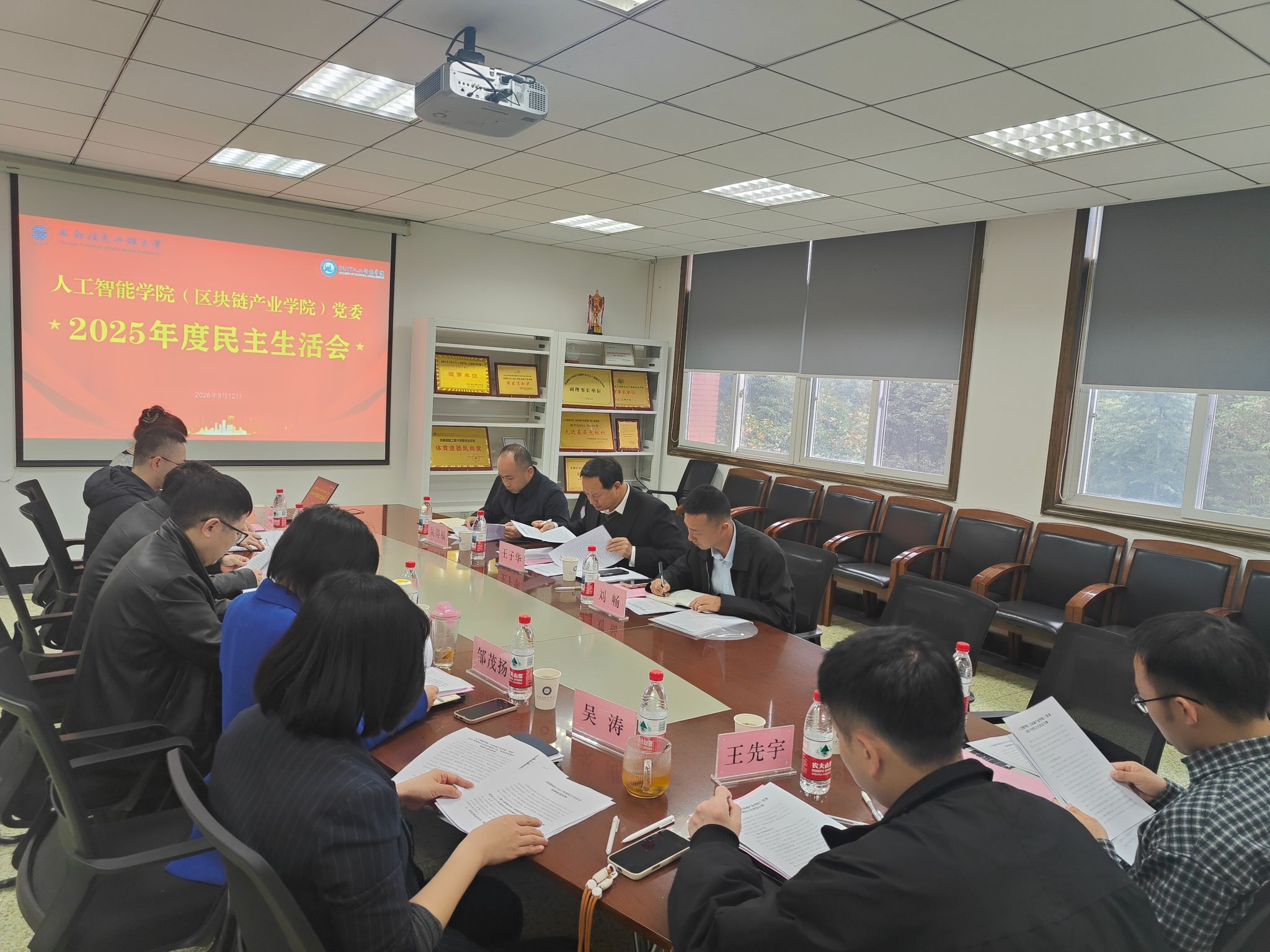 3月12日上午,人工智能学院(区块链产业学院)党委召开2025年度领导班子民主生活会。学校督导组王子华、刘畅、吴得福到会指导,学院党委领导班子全体成员参加会议,学院党委委员、相关基层党支部书记和科室负责人列席会议。会议由学院党委副书记林少疆主持。