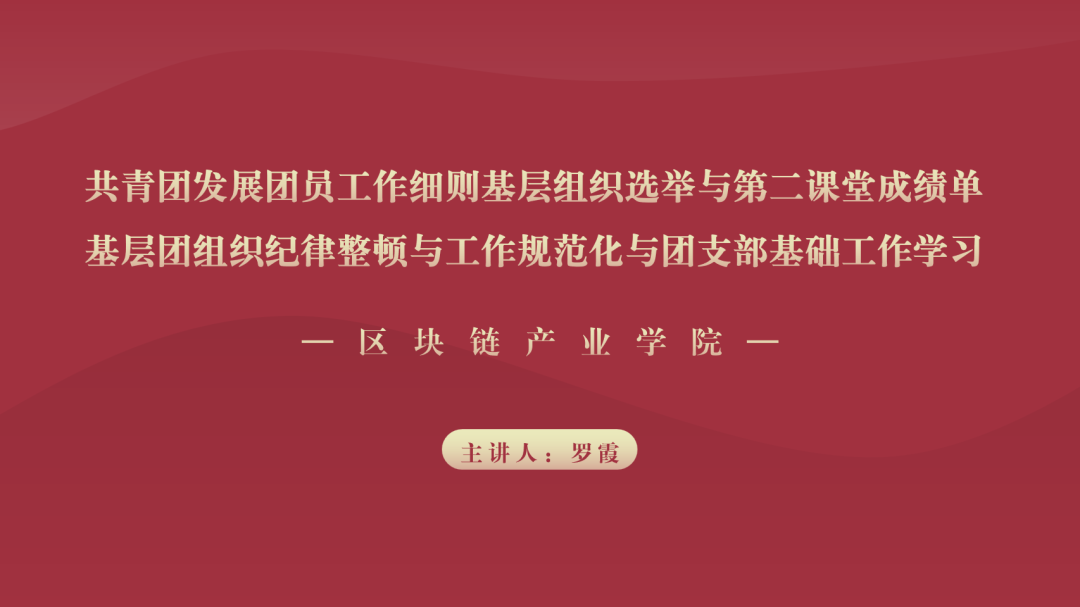 2022年12月19日,区块链产业学院组织召开第三期团校关于“共青团发展团员工作细则基层组织选举与第二课堂成绩单基层组织纪律整顿与工作规范与团支部基础工作学习”主题的团课,由学院分团委书记罗霞老师与组织部负责人夏若茗主讲。