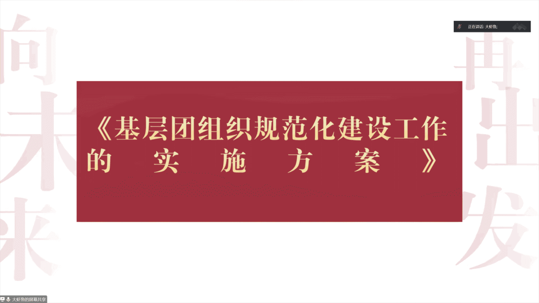 根据《关于在高校实施共青团“第二课堂成绩单”制度的意见》《基层团组织规范化建设工作的实施方案》《中国共产主义青年团支部工作条例(试行)》,罗霞围绕团组织建设展开课堂,明确团组织建设的重要性,介绍团组织生活的程序,旨在强化基层团组织规范性,带领大家更加紧密地团结在中国共产党的领导下。