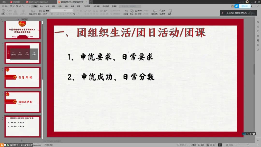 主要讲述团日活动、团课等相关团组织生活,介绍入团入党、团校成绩评定等相关事务。