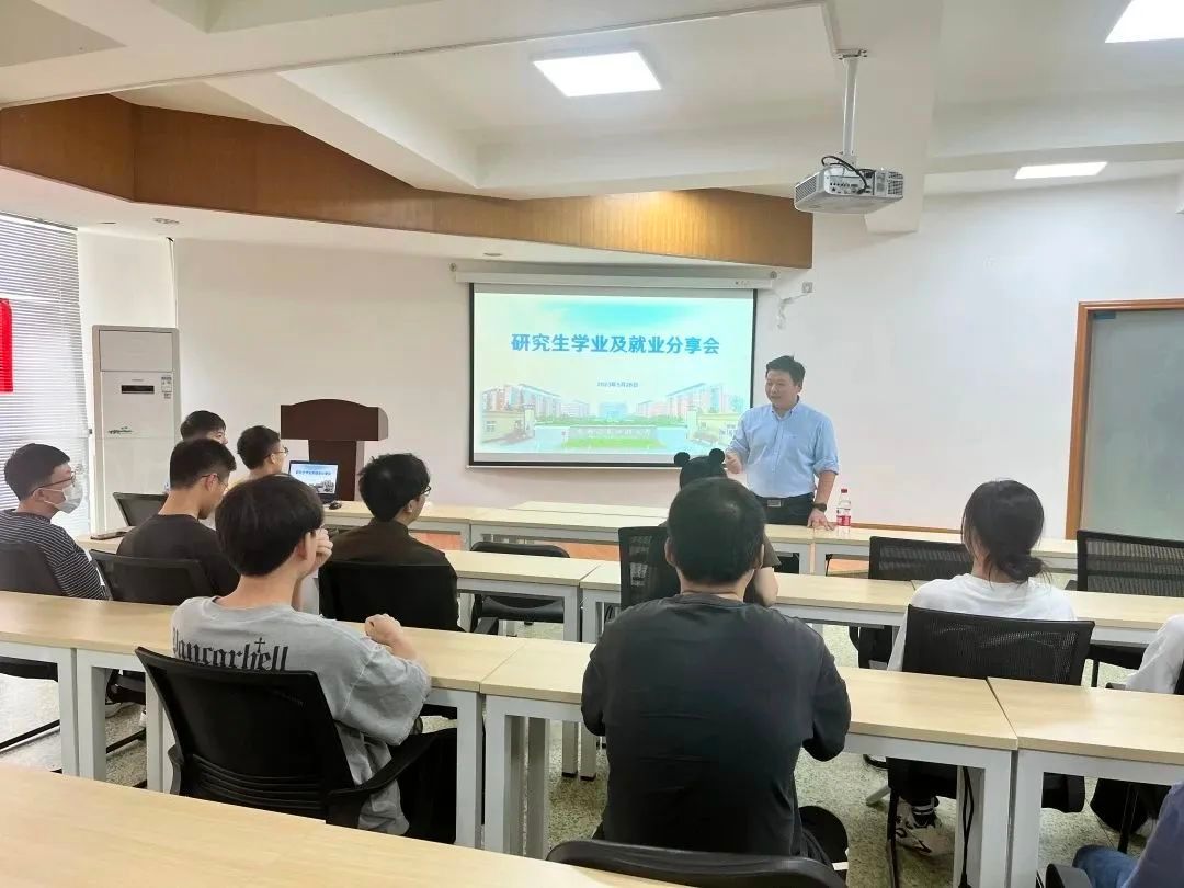 学院党委书记林细俤结合近三年研究生就业情况发表讲话。林书记指出就业是人生路上的关键选择,也是步入社会的转折点。希望大家能够充分吸收优秀毕业生的宝贵经验,树立正确的择业观并对未来的职业有明确的规划。