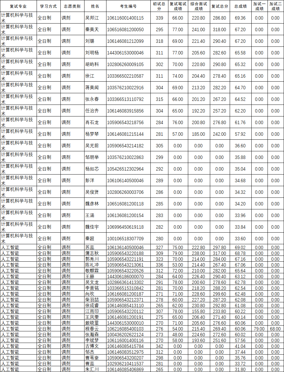2026年人工智能学院硕士研究生复试成绩公示(第二批)